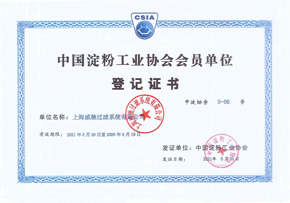 VITHY Filtration joined the China Starch Industry Association in 2021, witnessing industry growth and contributing to industrial development.